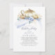 Gold glitter pumpkins dusty blue flowers elegant fall birthday invitations.