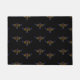 Gold, purple and green abstract bird on black doormat