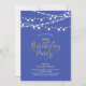 Celebrate a special day with this chic gold birthday party invitation! This design features string lights and a stylish gold script typography with an purple blue background. You can personalise the text to any age/milestone birthday. More adult birthday invitation and party supplies are available at my shop BaraBomDesign.