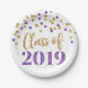 Gold Purple Glitter Confetti Graduation 2019 Paper Plate