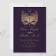Stylish modern Masquerade ball wedding invitation. Elegant handwritten calligraphy combined with a modern font on a purple background complement each other and look harmonious at the same time.