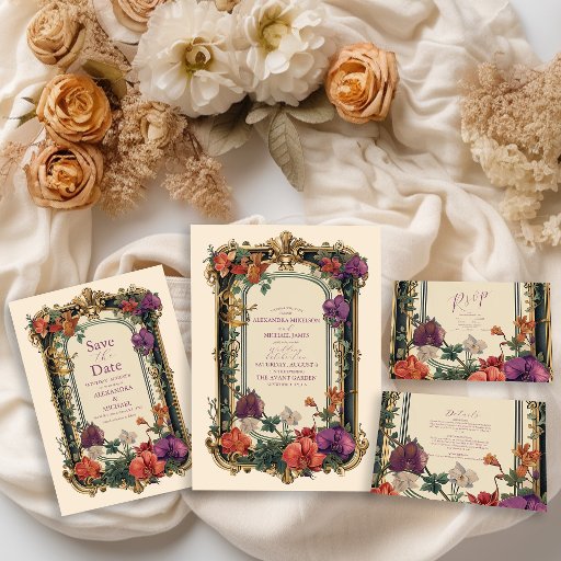 Elevate your wedding with our Vintage Floral Art Nouveau Wedding Invitation, a perfect blend of timeless elegance and artistic charm. This exquisite design features intricate Art Nouveau patterns, combining flowing floral elements with graceful curves that exude sophistication and romance.
