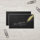 Gold Quill Feather Pen Hand drawn Line Black Linen Business Card