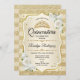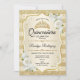 Features stripes, script font, white roses, tiara and confetti. Classy design with faux glitter gold. Perfect for an elegant glam celebration.