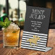 Mint Julep plastic pedestal sign features a gold race horse on black and white stripes at the bottom and the words "Mint Juleps" and a list of their ingredients. MATCHING items in our collection.