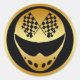 GOLD RACING HELMET WITH CHECKERED FLAGS CLASSIC ROUND STICKER