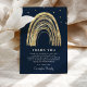 A thank you card to send out to friends and family who have shown you love and support during your time of grief. Featuring a midnight navy blue background, a faux gold abstract rainbow surrounded by gold stars, and a simple thank you message that can easily be customised.