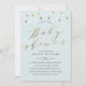 Blue & Gold modern and elegant baby shower invitation design featuring faux gold foil raindrops and calligraphy. Back side with gold stripes.