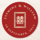 Gold Rectangle Double Happiness Chinese Wedding Round Paper Coaster