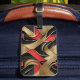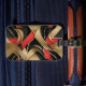 A digital art piece featuring abstract geometric shapes in gold, red, and black.