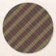 Gold Red And Green Christmas Plaid Print Round Paper Coaster