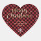 Gold Red Buffalo Plaid Snowflake Merry Christmas Heart Sticker