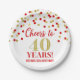 Gold Red Confetti Cheers to 40 Years Birthday Paper Plate