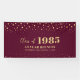 This modern welcome banner is perfect for a chic burgundy red and gold class reunion party. A stylish custom party banner to remember your special day. The design features custom gold colour text " Class of 1985 / 40 Years Reunion " with confetti background. You can personalise the text with your own info. (graduation year, reunion year, school name, etc)