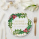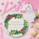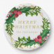 Gold Red Family Merry Christmas Holly Glitter Paper Plate