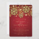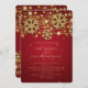 Modern & elegant "Gold & Red Holiday Wedding Save The Date Invitation" template, with gold glitter snowflakes and lights on Red background.
