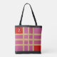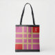 Here is a very chic and fashionable design for your shopping bag, made of several pink rectangles and squares, 2 red squares in opposite corners, as well as a golden grid. A black glitter border adorns the top and bottom of the bag. The red rectangle at the top right has a monogram that you can easily personalise. It is written in white in a trendy font. Feel free to remove it if you wish.