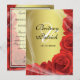 Gold & Red Rose Wedding Invitations---Match the RSVP cards & entire suite found below on this page. Each invitation features an elegant rose design on both sides in vibrant red with a gold background. The design also features whimsical white faux lighting. These red rose wedding invitations are set to high quality basic card stock; however, you can change the stock to linen, felt (embossed), recycled, and several metallic shades if you would like under number 2 (choose your style, size & paper type) below the orange add to cart button. A list of the additional costs for a fancier card stock are displayed also under that option. Each invitation comes with a fitted white envelope.