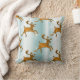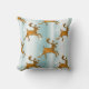 This lovely Christmas pillow features a pattern of golden reindeer running across the ice. There are also white sparkles and stars twinkling all around them. This festive gold and pale blue cushion will make a charming addition to anyone's Christmas decor for the holidays.