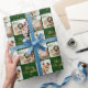 Gold Retro Merry Christmas Family 3 Photo Collage Wrapping Paper