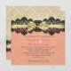 Gold Ribbon Damask Lace Coral Wedding Invite