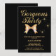 Gold Ribbon Girl Gorgeous Thirty Black Birthday Invitation
