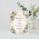 A soft beige, cream coloured background. Decorated with white and yellow florals and a golden ribbon. Personalise and add your names and details.