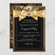 Gold Engagement Party Invitation. Gold bow with jewel heart & black floral design. PLEASE NOTE all flat images! They Do NOT have real Bows, Diamonds or Jewels!!