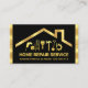 Cover features a gold rooftop with a gold handyman tools design. All this is encapsulated by a pair of gold striped layers at the left and right rims of the card. Near the base of the card is the business name "HOME REPAIR SERVICE" and the contact details.