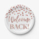 Welcome back paper plates in Rose and Gold confetti pattern.