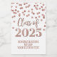 Graduation party custom mini wine bottle labels class of 2025 with rose gold glitter pattern confetti.