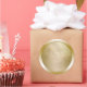 Round label/sticker in a rich gold with rose marble background plus a shiny gold frame.. You can click on "Customise it!" if you'd like to add text or a photo.