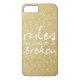 Gold Sparkle Rules are made to be broken iPhone 6 Case from the Breathe In novel by Martha Sweeney.
