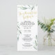 Dreamy meets rustic with this eucalyptus and gold wedding program. Add your own wording into the template below the beautiful script heading. This card is part of our 'Anne & Oliver' range - check the full range out in our store!