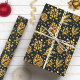 Gold Rustic Pine Cone Green Holiday Christmas Wrapping Paper