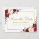 Watercolor Floral Burgundy Marsala Gold Save The Date Engagement Card - Burgundy Back