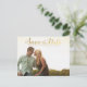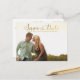 Gorgeous faux gold foil typography on the front of this designer postcard which you can upload into with your own engagement/save the date photo portrait. Easily and quickly personalise this designer professionally printed save the date postcard here and now by just typing over the example text and adding your own photograph. Elegant, chic, simple and classy gold script/cursive typography