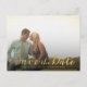 Gorgeous faux gold foil typography on the front of this designer postcard which you can upload into with your own engagement/save the date photo portrait. Easily and quickly personalise this designer professionally printed save the date postcard here and now by just typing over the example text and adding your own photograph. Elegant, chic, simple and classy gold script/cursive typography
