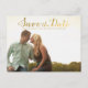 Gorgeous faux gold foil typography on the front of this designer postcard which you can upload into with your own engagement/save the date photo portrait. Easily and quickly personalise this designer professionally printed save the date postcard here and now by just typing over the example text and adding your own photograph. Elegant, chic, simple and classy gold script/cursive typography.