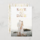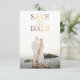 Save the Date Wedding Announcement. Modern minimal typography in faux gold metallic foil with blocked photo. Completely versatile do-it-yourself style layout. Easily adjust the size, style and placement of all text elements. Black ombre filter is used for display, but you can remove or change this by clicking on the advanced Customise mode.