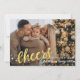 Gold Script 3 Photo Cheers to the New Year Linen Holiday Card