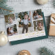 Share holiday greetings with these chic Christmas photo cards featuring five favourite photos in a collage layout (4 square and one portrait/vertical). "Merry Christmas" appears along the bottom in gold foil hand lettered script typography. Personalise with your name(s) and the year beneath.