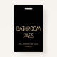 Gold Script On Black Simple Back To School Bathroom Hall Pass Badge. Easy to customise. Get yours today!