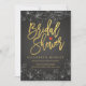 Gold Script Black Linen White Floral Bridal Shower Invitation