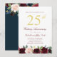 gold script burgundy navy 25th wedding anniversary invitation