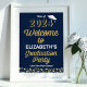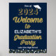 Gold Script Confetti Grad Party Blue Welcome Sign