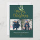 Gold Script Merry Christmas Mistletoe 3 Photo Holiday Card