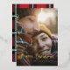 Gold foil stylish script merry christmas with coordinating red and green check tartan backer design. Space for a single photo design. A modern take on a traditional christmas.