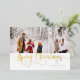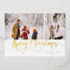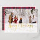 Gold Foil Script "Merry Christmas" with red tartan pattern backing, 2 photo Christmas card.