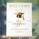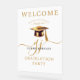 Celebrate your achievement in style with this modern graduation party elegant acrylic welcome sign gold on white. featuring a sleek design with a gold graduation cap and topper, and elegant gold script calligraphy initials. The clean design adds a touch of sophistication. Gold and black type.